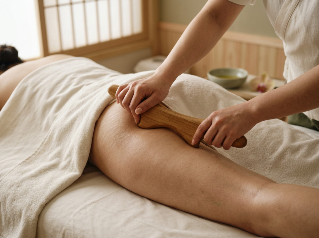 Soin corporel inspiré des techniques coréennes de remodelage et de drainage. Il combine travail manuel et instruments en bois pour stimuler la circulation, lisser l’aspect de la peau et redéfinir visuellement la silhouette. Chaque geste est pensé pour agir en profondeur, favoriser le drainage et alléger les tensions, avec une approche adaptée aux besoins spécifiques de chaque corps. La peau retrouve une sensation de légèreté, le corps paraît plusharmonieux, plus fluide.